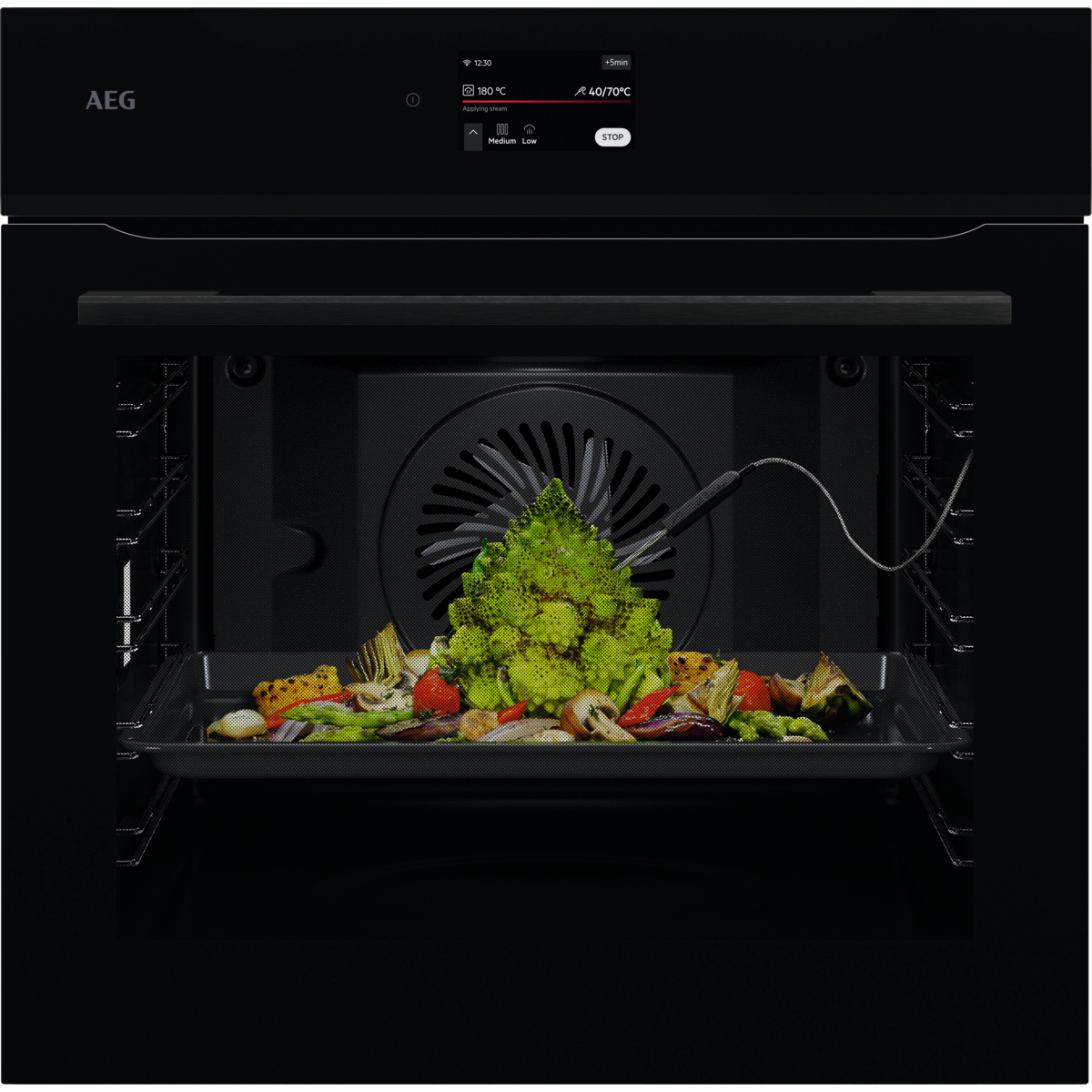 פונקציית בישול ייעודית לברביקיו בצלחת דו-צדדית מתאימה למנות עסיסיות ופריכות בתנור עם טעם אופייני של צלייה. הצד עם הפסים מתאים במיוחד לבשרים וגבינות. הצד החלק מתאים לדגים, פירות ים וירקות. ברביקיו
